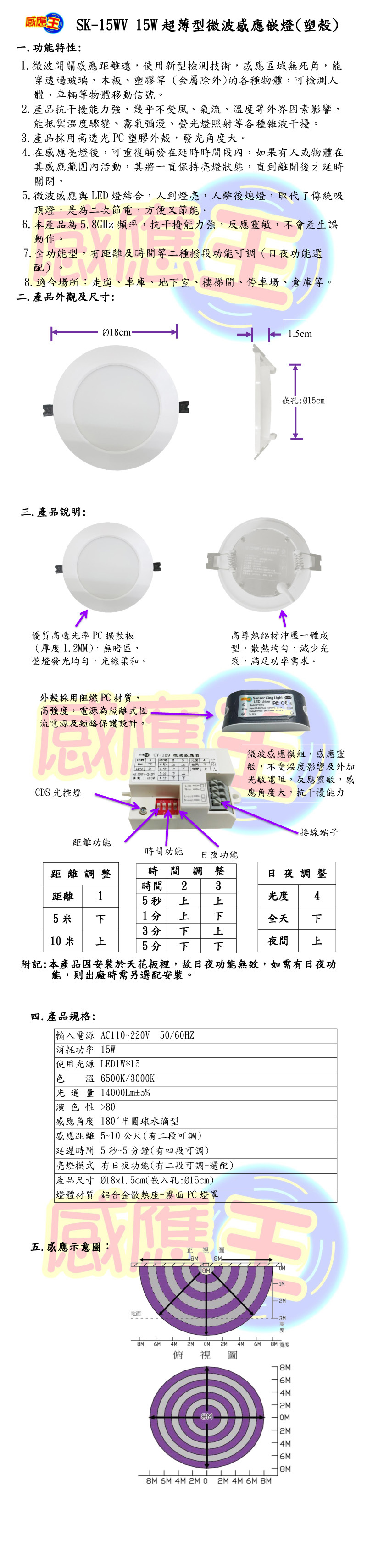 15W超薄型微波感應嵌燈(塑殼)