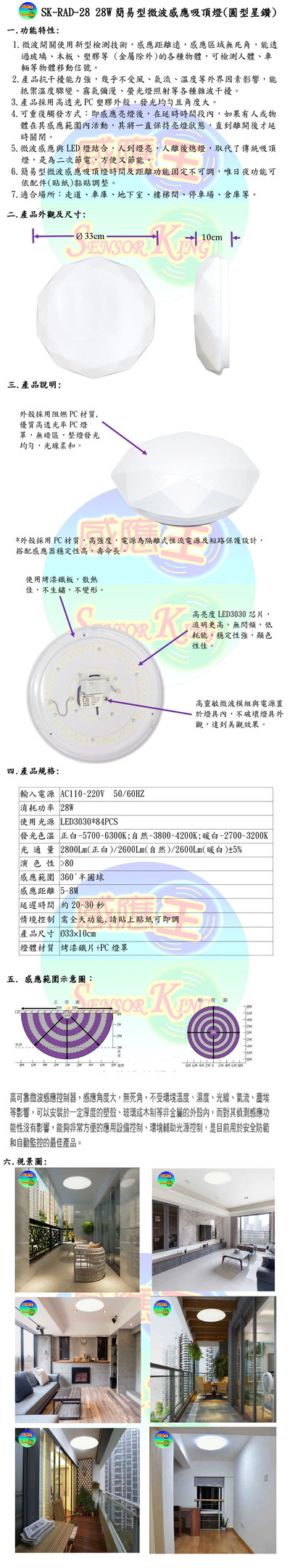 28W簡易型微波感應吸頂燈(圓型星鑽)