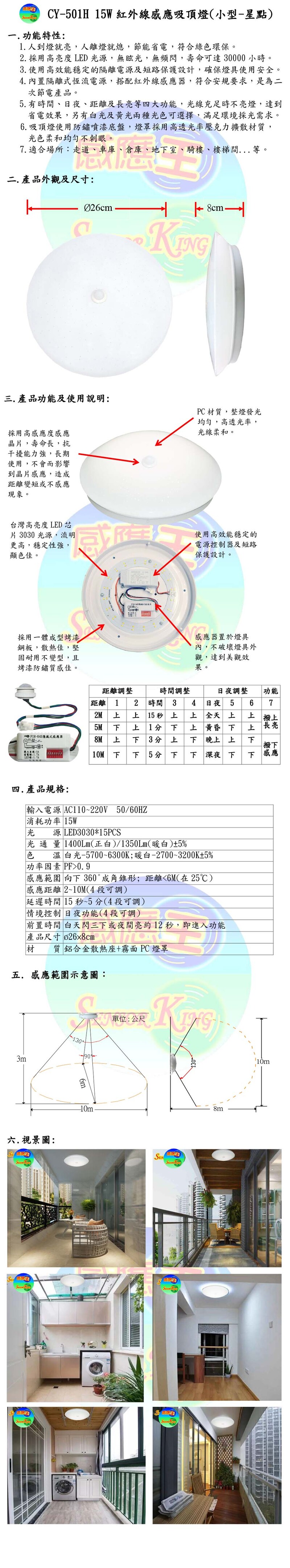 15W紅外線感應吸頂燈(小型-星點)
