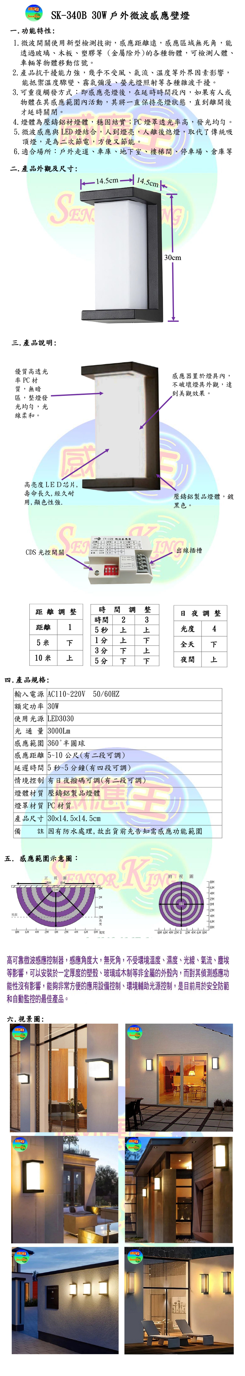 30W戶外微波感應壁燈