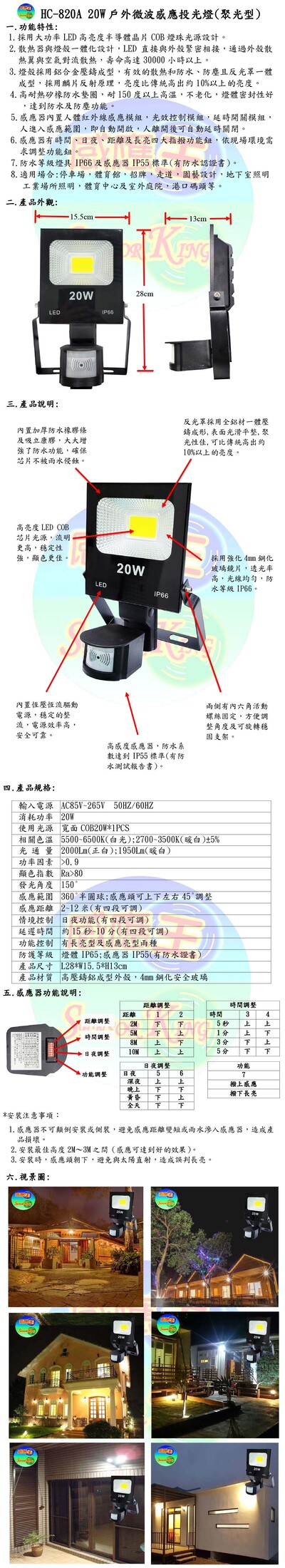 20W戶外微波感應投光燈(聚光型)