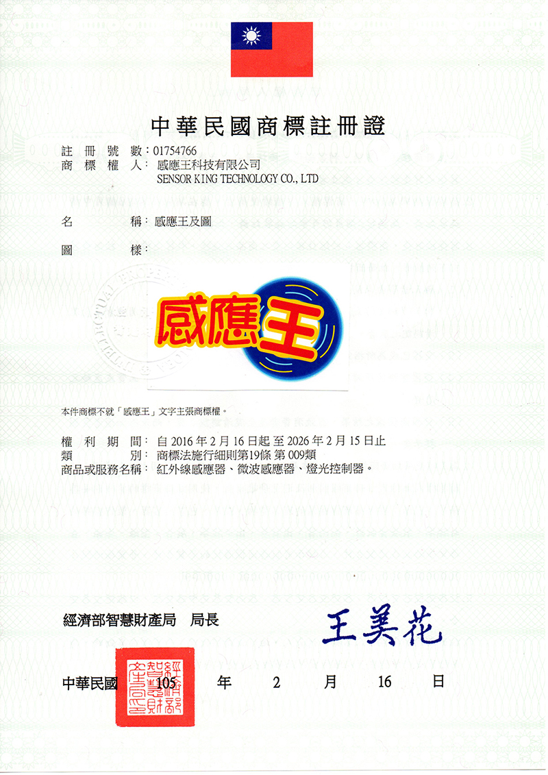 感應王商標證書