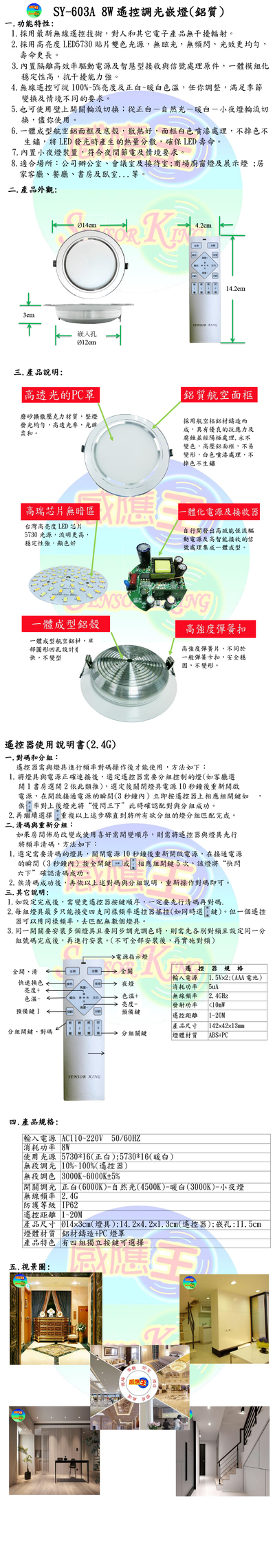 8W遙控調光嵌燈(鋁殼-嵌孔12cm)